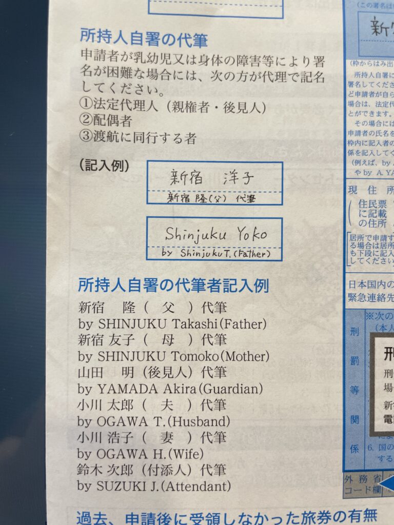 ちなみに、子ども用の申請書の『所持人自署』の部分は